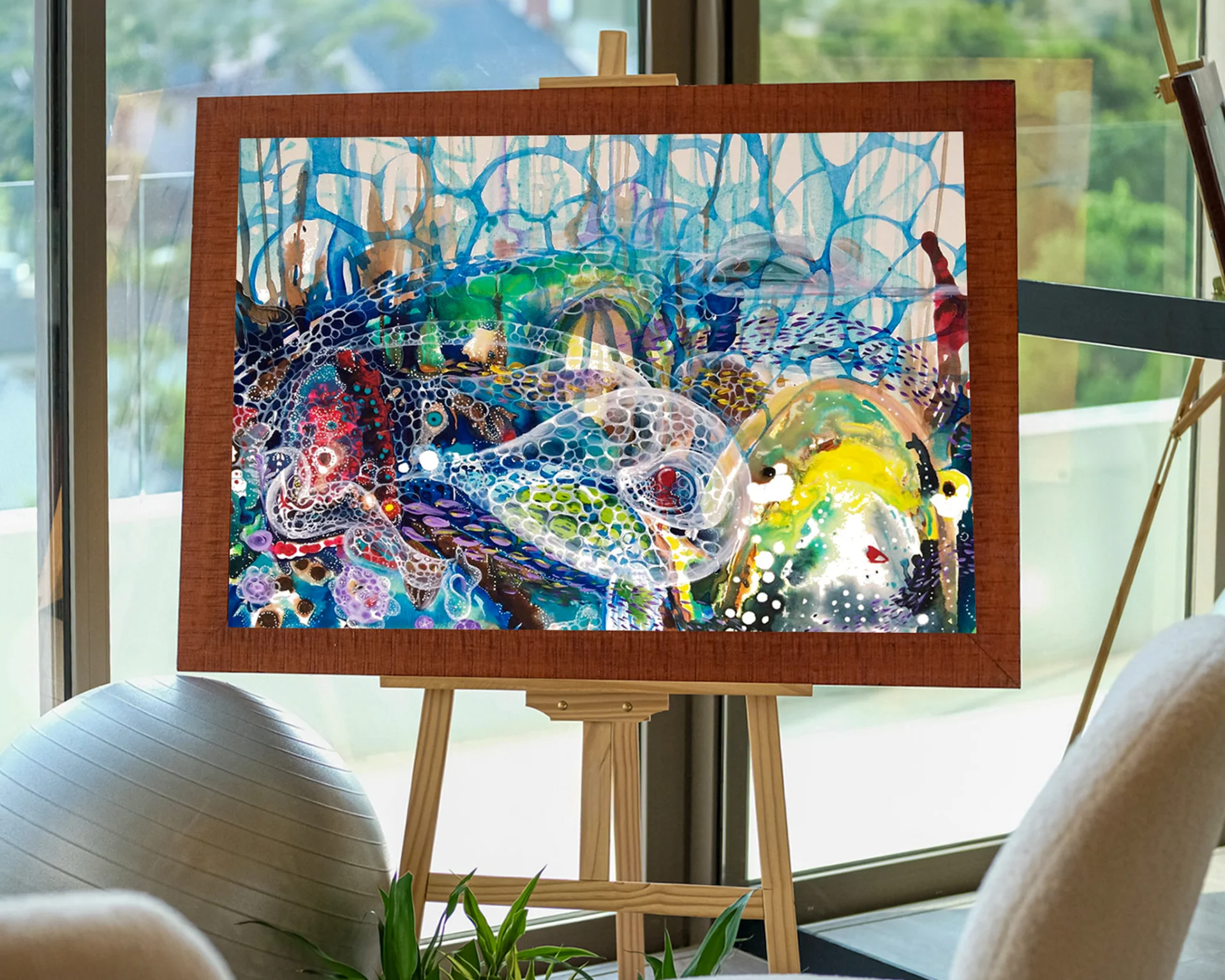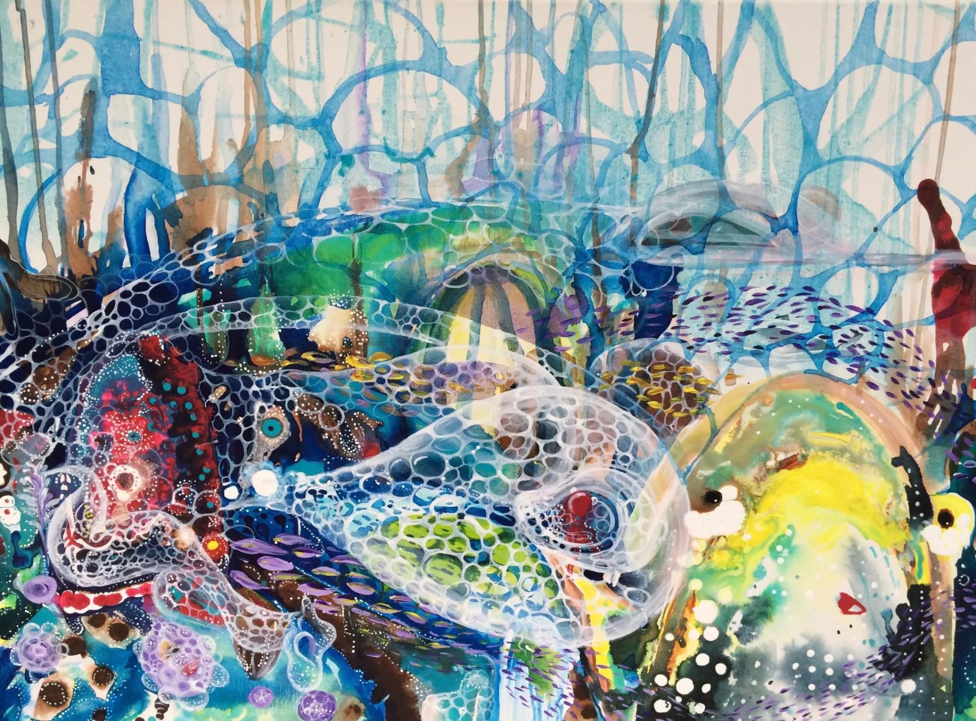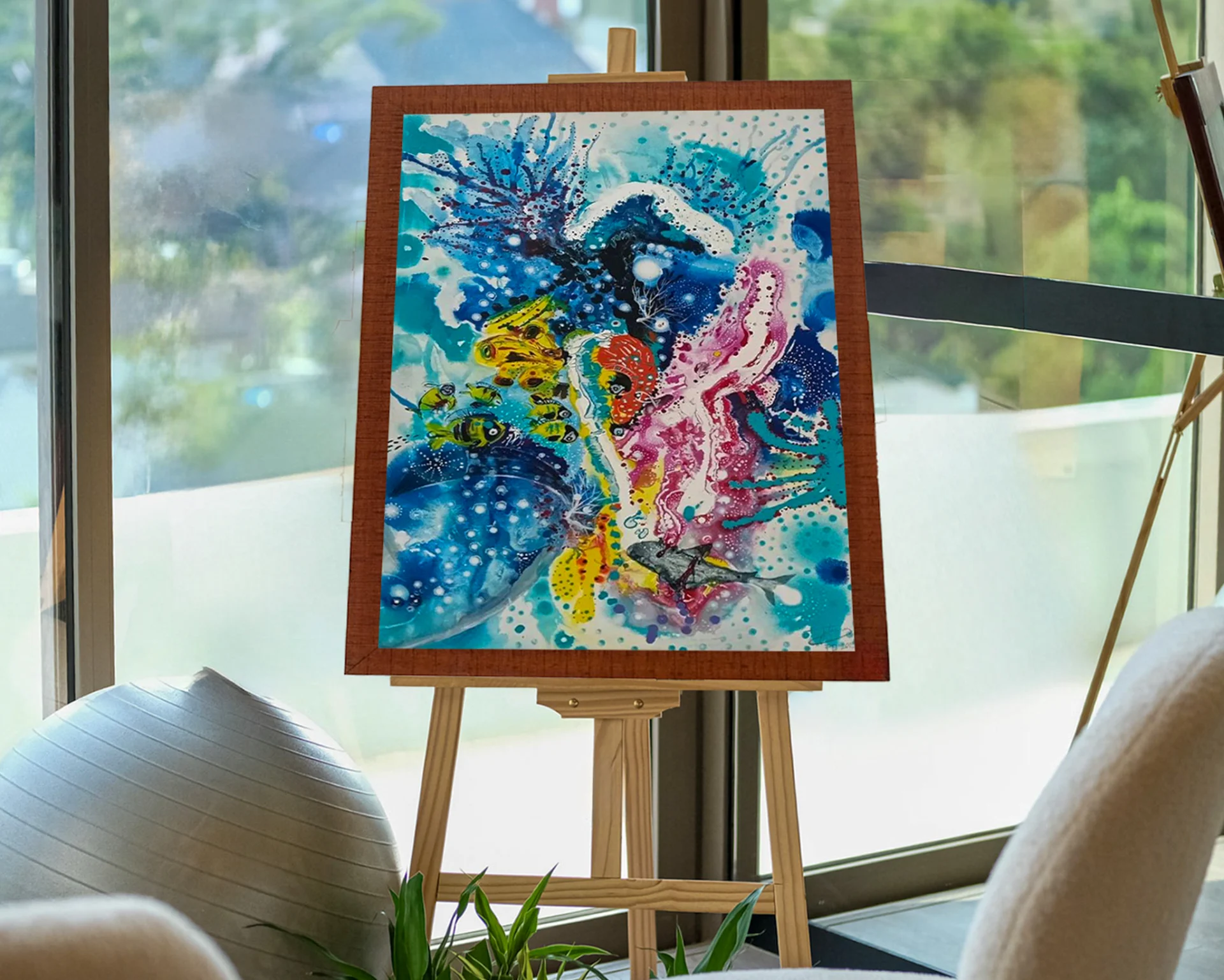 Ее выставка Подводный мир Приглашает зрителей погрузиться в воображаемый морской пейзаж, где сосуществуют спокойствие и движение.
