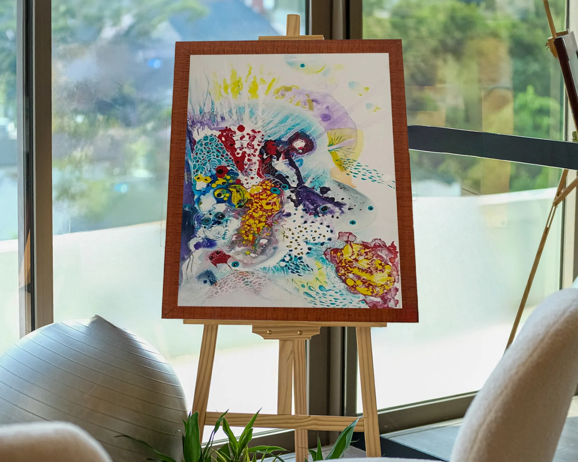 Ее выставка Подводный мир бежит рядом с Sole & Soul Sunset Journeys: Том #9 - Цветущий баланс, Безмятежный вечер, посвященный осознанности, искусству и благодарности.